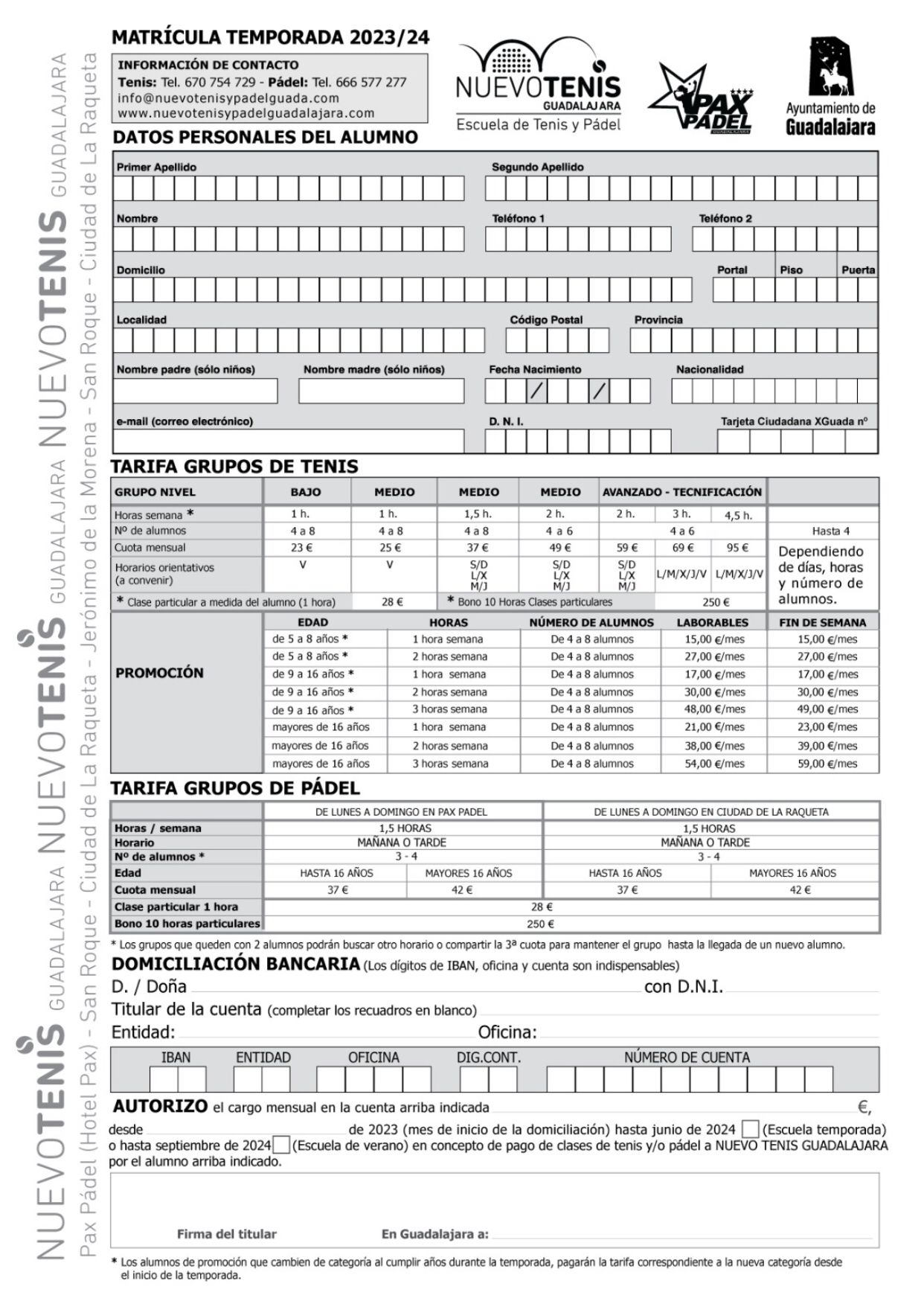Para renovar tu matrícula de cara al siguiente curso y reservar tu plaza, comienza rellenando el siguiente formulario (coste de matrícula 30€):
